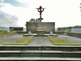 平戸の殉教者は激増。その数は400名を越えると 伝えられる。この碑は、教会献堂50周年に当たり 建てたとある。 写真をクリックすると「顕彰慰霊碑」の案内板が
