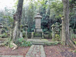 「松浦隆信(宗陽)の墓」。 左右には、その家臣が眠るという。 写真をクリックすると「松浦隆信(宗陽)の墓」の