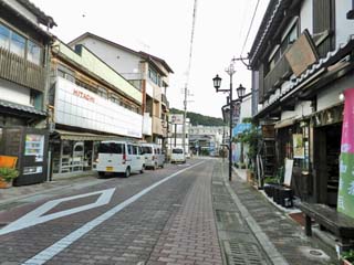 2013/10/1(8:34) 「光明寺」から、「寺院と教会の見える風景」の坂を下り 平戸の商店街に出る。 |