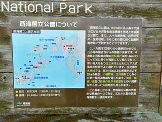 「西海国立公園について」の案内板。 「西海国立公園」は、九十九島地域の他、平戸・生月