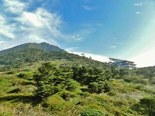 「仁田峠」から見る「妙見岳(標高:1,333m)」。 写真には「雲仙ロープウェイ」が写る。