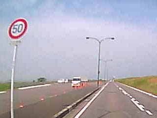 「パーキングエリア」の直前。 前方に「展望歩道橋」が見えている。 |
