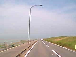 その先でUターンして、上の陸橋を左から右へと通過すると、「堤防道路」である。