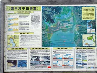 「諫早干拓事業」の案内板。 「諫早干拓事業」は、マスコミ等により世間の注目を 浴びたことから、「諫早市」等は、この事業の必要性を