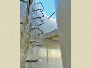 「展望塔」最上部の梯子。 「展望塔」からの景色を楽しむには、この梯子を 登らなければならない。 |