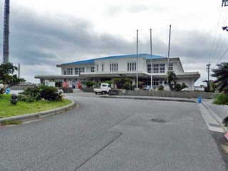 駐車場は、「知念体育館(左の写真)」の裏にあり、世界遺産「斎場御嶽(せーふぁうたき)」のチケット売場がある