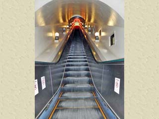 2015/4/9(16:16) エスカレータで、地上へ上がる。 長いエスカレータは、観光客のためではあるが、 出口からの侵入防止も兼ねているようであった。 |