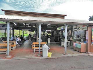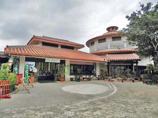 2015/4/9(17:02) 「おみやげ専門店街」と「エイサー広場」。 左の建物「おみやげ専門店街」の2階は、沖縄の素材に こだわった健食バイキングレストラン「ちゅら島」である。 右の建物「エイサー広場」では、旧盆の先祖供養の 集団舞踊「エイサー」の他、獅子舞やアンガマ、四つ竹 等の沖縄伝統芸能が1日4回披露されている。 |