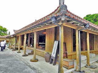 2015/4/9(16:52,16:53) 「藍染工房(旧伊礼家)」と「紙すき工房(旧田場家)」。 「おきなわワールド」の中にある「王国村」では、築100年以上を経過した古い民家が移築され、 昔の沖縄の町並み「琉球王国城下町」が再現されている。 移築された各古民家では、伝統工芸の実演や体験教室等が行われており、 「藍染工房(旧伊礼家)」では、琉球藍を使った昔ながらの手法での染め体験を、 「紙すき工房(旧田場家)」では、琉球和紙を使った、「しおり」や「はがき」等を作ることができる。 |