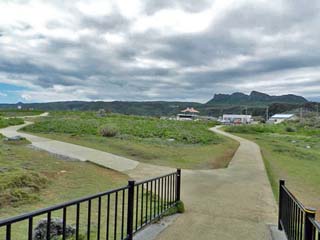 帰路は、写真奥の方向に直進し、駐車場へと戻る。 これで、「辺戸岬園地」を左回りに一周したことになる。 |