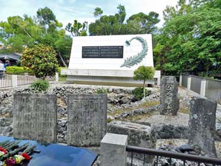 刻まれ、裏(奥)にある「納骨堂」には、沖縄線最期の地 から収集された遺骨が眠る。 写真をクリックすると拡大写真(600x450)が 表示されます。 |