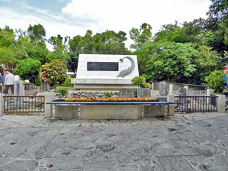 昭和21年(1946)に建立された「ひめゆりの塔」他。 写真左手前に2つ並ぶのが「刻銘碑」。