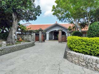 「ひめゆりの塔」入口前。 「ひめゆりの塔」は、国道331号線沿いにある。 写真左、赤い瓦屋根の建物は、「献花販売所」。 |