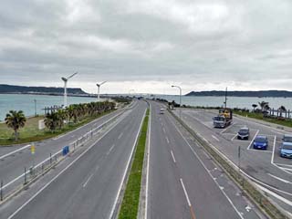 「海中道路」に架かる歩道橋から、西の方向を撮影。