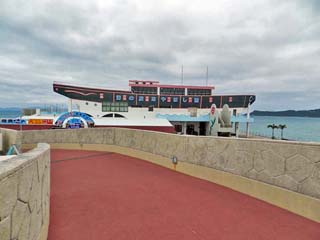海の駅「あやはし館」。 建物は、船の形を模しており、2階には「勝連半島」の 歴史や民俗資料を集めた「海の文化資料館」がある。