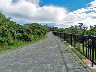 駐車場から展望台に続く遊歩道。 写真では、距離が遠く写るが、展望台までの距離は、 せいぜい100m程であったと記憶する。 |