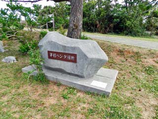 「バンタ」とは沖縄の言葉で「崖」のことで、束ねた茅を崖から投げ落とすと強風でバラバラになったことから「茅打ちバンタ」の 名が付いたといわれている。 |