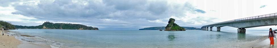 JALのCMでも使われ、夫婦や恋人たちに人気の 場所となっている。 写真をクリックすると道路の高さから撮る 「古宇利大橋」が表示(600x450)されます。 |