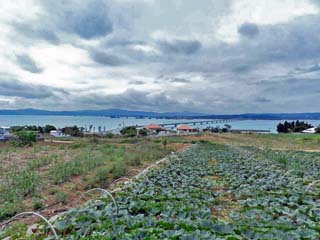 「屋我地島」から見る「古宇利大橋」。 対岸の「古宇利島」は、半径約1Km、周囲約8Kmの
