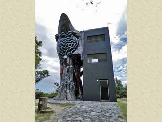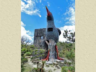 「ヤンバルクイナ展望台」。 近くに寄ると大きい。展望台と思えば当然なのだが、 これほど大きな「ヤンバルクイナ」を目の前にすると