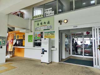 道沿いにある「オープンカフェ」風の店では、 アイスクリームや氷、沖縄そば等を食べることが できる。また、「地域物産館」の2階にも、カフェと