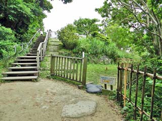 「久高島謡拝所」。 かつての「三庫理」は三方を岩壁に囲まれており、 「久高島遙拝所」は、「御門口」の下方にあった。 近世になり、「三庫理」を囲む岩壁の一角が崩れた