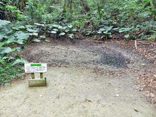 残っていない。そのため、この穴を戦争の遺跡として 保存しているとある。 写真をクリックすると「艦砲穴」の案内板(600x600)が 表示されます。 |