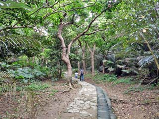 更に奥へと進む。 この地域は、戦災を免れたシダ植物やラン科植物等、 珍しいものが多く残るという。 |