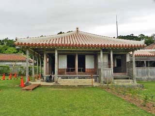 2015/4/10(14:13) 「前の一番座」。 ここからは、「御殿」の中を紹介する。 「前の一番座」は、玄関脇にあり、「1800年、尚温王の 冊封使は、この部屋でお茶のもてなしを受けた」とある。 写真をクリックすると「御殿全図(間取図)」が 表示されます。 この間取図は、1,200x850ピクセルあります。 間取図の文字を読みたいときには、表示された画像を クリックし、スクロールバーをご利用下さい。 |