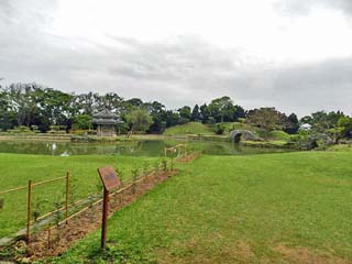 2015/4/10(14:00,14:00) 「識名園」のチケット売場と入口を入ったところ。 「識名園」は、那覇市真知にあり、寛政11年(1799)に琉球王家最大の別邸として造られ、約12,726坪の 土地に池を中心とする「廻遊式庭園」が築かれ、国王一家の保養や中国からの使者「冊封使(さっぽうし)」の 接待などに利用されたという。 先の沖縄戦では、建造物のほとんどが破壊され、壊滅的な被害を受けたが、昭和50年(1975)から 20年の歳月と約8億円の費用を費やして復元され、平成12年(2000)には、世界文化遺産に登録されている。 「識名園」は、基本的には日本式庭園でありながら、地理的に近い中国の建築文化を取り入れ、 池を「琉球石灰岩」で囲むなど、琉球ならではの建築技法も取り入れられている。 また、常夏の沖縄で、春は「梅」、夏は「藤」、秋には「桔梗」と、四季の移ろいも楽しめるよう気配りされている。 |