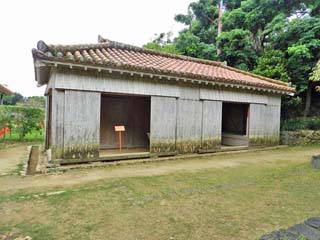 2015/4/10(14:25) 「駕籠屋」。 「駕籠屋」は、「御殿」の隣りに有り、首里城から 国王などが乗ってこられた「御輿(乗り物)」を 収めると共に、担ぎ手たちが一服するところでも あったとある。 |
