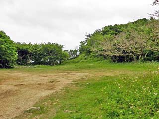 「一の郭」。 写真左には、琉球開闢の七岳の一つとされ、 琉球国王も参拝したと伝わる「天つぎあまつぎの御嶽」 がある。
