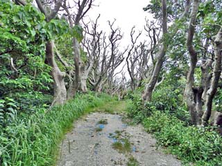 城門を出たところで見る「階段(木道)」。 |
