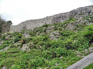 階段途中で見る「一の郭」の城壁。 「一の郭」の城壁は、ほぼ原型を残している。 写真をクリックすると拡大写真(600x450)が 表示されます。 |