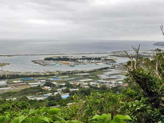 「一の郭」から南南西に見る、「奥武島」。 「奥武島(おうじま)」は、周囲1.7km程の小島だが、