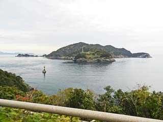 「段々展望所」から見る「大島」。 「大島」は、人口200余りが住む有人島で、他の大島と 区別するため「鶴見大島」とも呼ばれる。