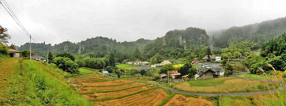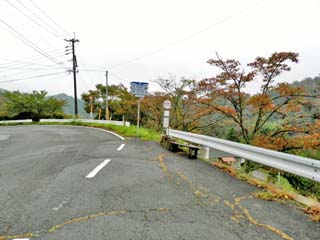 バス停「立羽田」。 場所は、JR「豊後森駅」から県道43号(玖珠山国線)を 「山国町」に向け約10.8km走ったところである。