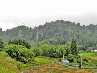 「立羽田の景」の西側岩峰群。 上のパノラマ写真中央左の岩峰群を2倍ズームで撮影。
