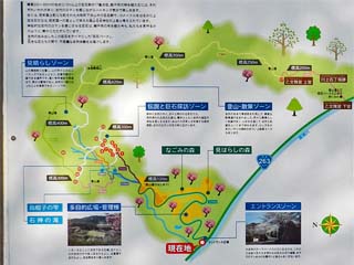 巡ると1.5km程で、約1時間の軽登山という。 また、尾根筋を「乙文殊宮」まで歩くと、距離が約4km、 3時間弱の登山になるという。 写真をクリックすると「園内案内図」が拡大表示されます。
