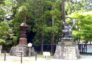2010/7/4(12:58) 「青龍山灯篭(左)」と「延命地蔵(右)」。 「境内入口」の左側にある。 「青龍山灯篭」は、8代目伊達成村が亡くなった ときに、彼の奥さんが建てたといわれる。 「延命地蔵」は、文久3年(1869)鋳造。 延命のいわれは、「飢饉時の幼児保護などに 勤めた当山117世中方明哉和尚の業績や長命に あやかったと伝えられている」とある。 |