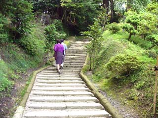 2010/7/4(13:32) この石段を登ったところに「陽徳院御霊屋 (寶華殿)」があるが、撮影禁止であった。 「陽徳院御霊屋(寶華殿)」は、伊達政宗公の 正室陽徳院田村氏愛姫(1568~1653)の 墓堂であり、万治3年(1660)孫の綱宗に よって造営され、平成18年から3年をかけ 復元されている。 |