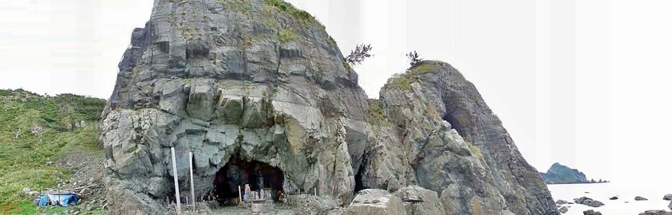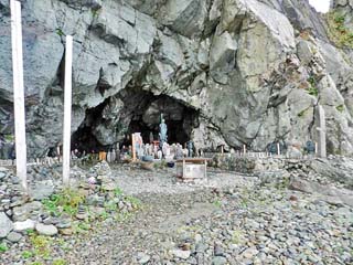 2016/9/27(7:37) 「賽の河原」。 「海食洞穴」の中や周囲には、大きいものから小さい ものまで、無数の「石地蔵」が並ぶ。 写真をクリックすると拡大写真(600x450)が 表示されます。 |