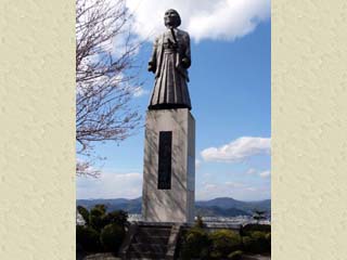 2010/3/26(14:01) 「茶畑」の先には、「中條金之助景昭」の石像が ある。 石碑には、徳川の旗本で、剣道・柔道の達人と して知られ、現在の「大牧之原茶園」六千有余 町歩の基礎を作った人とある。 散策路は、この先「法林寺」「愛宕塚古墳」へと 続くが、この日はここでUターン。 来た道を戻る。 |